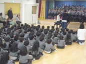 田中先生の演奏に対するお礼として年長組が代表して「ふるさと」、「ありがとうさようなら」を歌いました。子ども達には緊張した様子も見受けられましたが、先生からは「言葉ははっきりしていて、細部まで心がこもっていました。とても素晴らしかったです」というあたたかい言葉を頂くこともできました。