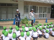 各学年での植物の栽培がすすむ中、年少組ははつか大根の取入れを、年中組はきゅうりの取入れを行いました。先生が代表して取り入れを行い、収穫したはつか大根の赤い実を見せて回ると年少組の子ども達からは、「赤い!」「まんまる!」「細長いのもあるよ!」などの声が聞こえてきました。また年中組では取り入れしたきゅうりを見た子ども達から「わー大きい!」「美味しそう!」「食べたい!」といった声が上がりました。なお、年長組のピーマンはかわいらしい白い花を幾つも付けており、枝豆は大きな葉を何枚も出しています。徐々に収穫が始まりますが、その日を楽しみに大切に育てています。